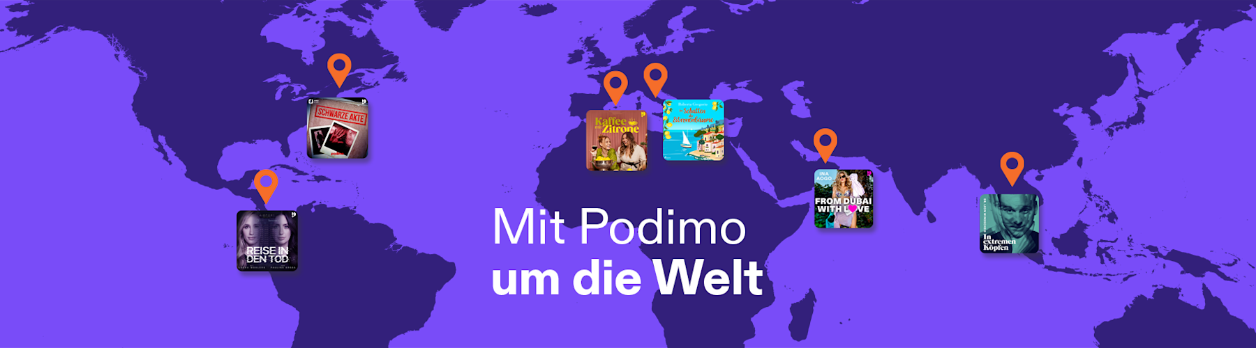 Thailand, Kenia, Australien… oder doch lieber Österreich, Spanien und Italien? Egal, wie groß dein Fernweh gerade ist, bei Podimo wird es gestillt! Zwar bekommst du bei uns keine Flugtickets, aber dafür kannst du ganz bequem von zu Hause aus mit uns um die Welt reisen.