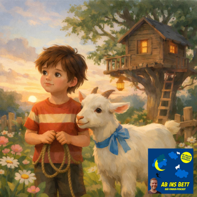 Zweimal langsam, zweimal schnell, zweimal langsam – das ist Alberts und Claras geheimes Zeichen. Doch als es an der Tür klopft, steht dort keine beste Freundin, sondern eine weiße Ziege mit blauer Schleife. Und sie kann sprechen. Ein kleines Missgeschick im Garten wird zu einer großen Aufgabe: Clara sitzt im Baumhaus fest, die Leiter liegt im Gras, und ausgerechnet der ruhige, überlegte Albert soll helfen. Statt Kraft braucht es kluge Ideen, Geduld und Vertrauen in die eigenen Fähigkeiten. ---------------------------------------- „Ab ins Bett“ begleitet Kinder seit über 5 Jahren beim Einschlafen – jeden Abend, mit über 2000 Geschichten. Damit das so bleiben kann, braucht der Podcast Unterstützung. Werde Träumer*in. Und hilf, dass „Ab ins Bett“ bleibt. Mehr Infos unter: www.abinsbett.net [http://www.abinsbett.net] ----------------------------------------