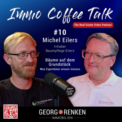In der 10. Folge des Immobilien Video-Podcast "Immo Coffee Talk" führt Immobilienmakler Georg Renken ein Interview mit dem Inhaber Michel Eilers von Baumpflege Eilers aus Worpswede. In dieser Podcast-Folge sprechen wir über das Thema Baumpflege- und Fällungen auf Grundstücken. Time Stamp | Themen in diesem Podcast u.a.: 00:00 – 01:12 | Intro & Vorstellung 02:58 – 07:28 | Bäume & Immobilien – Relevanz für Eigentümer 09:06 – 17:08 | Baumpflege bei Hauskauf & Neubau 17:09 – 19:58 | Praxisbeispiele & Anekdoten 19:59 – 29:12 | Technik & Sicherheit in der Baumpflege 27:54 – 29:12 | Nachhaltigkeit & Baumschutz 30:39 – 32:15 | Tipps für Eigentümer, Käufer & Makler 32:16 – 34:47 | Abschluss & Verabschiedung ---------------------- Georg Renken Immobilien Inhaber Georg Renken Immobilienmakler (IHK) Wilhelm-Dunkering-Weg 40 28357 Bremen / Germany Tel.: +49 421 33 62 98 60 E-Mail: info@georg-renken-immobilien.de Web: https://www.georg-renken-immobilien.de ------------------------- Kontakt: Michel Eilers / Baumpflege Eilers Mobil: +49 157 89182608 Web: https://baumpflege-eilers.de/ --------------------------- Hier findest Du uns auf Social Media: facebook.com/ImmoCoffeeTalk [https://www.facebook.com/ImmoCoffeeTalk] instagram.com/immocoffeetalk/ [https://www.instagram.com/immocoffeetalk/] facebook.com/GeorgRenkenImmobilien/ [https://www.facebook.com/GeorgRenkenImmobilien/] instagram.com/georgrenkenimmobilien/ [https://www.instagram.com/georgrenkenimmobilien/] tiktok.com/@georg.renken.immo [https://www.tiktok.com/@georg.renken.immo] 🎧 Hör den „Immo Coffee Talk“ Immobilien Podcast auch hier: ▶️ Spotify open.spotify.com/show/2elXtyRTyUaMjoNapVPYkF [https://open.spotify.com/show/2elXtyRTyUaMjoNapVPYkF] 🍏 Apple Podcasts podcasts.apple.com/de/podcast/immo-coffee-talk/id1833776056 [https://podcasts.apple.com/de/podcast/immo-coffee-talk/id1833776056] 📻 Amazon Music music.amazon.com/podcasts/03416c1c-e191-41f2-b0fb-5f8c8985aea3/immo-coffee-talk [https://music.amazon.com/podcasts/03416c1c-e191-41f2-b0fb-5f8c8985aea3/immo-coffee-talk] 🎵 YouTube Music music.youtube.com/playlist?list=PLz_DuQcTKpExeNEhTPC8uhy5rE-IxuXZV [https://music.youtube.com/playlist?list=PLz_DuQcTKpExeNEhTPC8uhy5rE-IxuXZV] ▶️ YouTube (Playlist) youtube.com/playlist?list=PL... [https://www.youtube.com/playlist?list=PL0mdzPOVbx5G34py4K-X-9l63JQ_lYvb9]