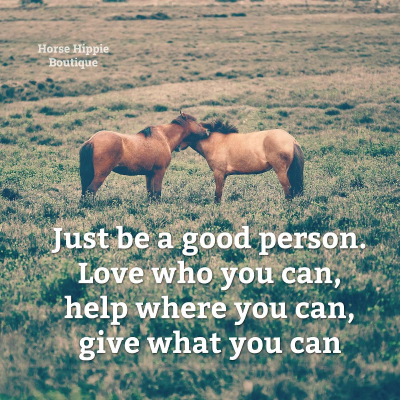 Morning Mantra: “Just be a good person. Love who you can, help where you can, give what you can.” As humans, we tend to complicate things with our ever-so-busy minds. Life is pretty simple actually. We over analyze relationships. We think helping others must be reciprocal so we make it transactional. Or we worry what we can offer isn't enough. Take your thoughts out of it. Keep it simple. Use an open heart to love- anyone and everyone that needs it. Take your head out of it and use your hands to help- without the thought of what’s in it for you. Take your mind out of whether what you can give is enough- just give what you can. When you remove the human traits of the ego your life flows to what matters. This year leave the "e" and just "go" with the flow. #BeAGoodPerson #BeHappy #BeHorsey #BeHippie #HorseHippie #MorningMantra #inspirationalQuotes #MorningMotivation #Equestrian #HorseLover #QuotesToInspire #HorseHippieBrand #HorseHippieBoutique