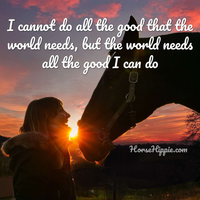 Morning Mantra: "I cannot do all the good that the world needs, but the world needs all the good I can do." Great opportunities to help others are out there but feel unattainable to most people, but small ones surround us everyday. I see these huge fundraisers for worthy causes and I want to help but always thought what I can offer won't matter. Then one day I realized my commitment to $10 a month is something I can afford and something they can count on. It changed the way I look at helping. I can't pay someone's hospital bill but I can fix a meal or two for when they come home. I can't buy someone a car but I can offer a ride. I can't feed all the horses at a rescue but I can volunteer a few hours a week. Don't think your small contributions don't matter. They do. So, whenever you're in a position to help someone, be glad and do it. #BeAGoodDeedDoer #BeHappy #BeHorsey #BeHippie #HorseHippie #MorningMantra #inspirationalQuotes #MorningMotivation #Equestrian #HorseLover #QuotesToInspire #HorseHippieBrand #HorseHippieBoutique