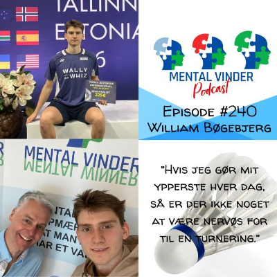 Dagens gæst er William Bøgebjerg – et af Danmarks største herresingle-talenter i badminton. Allerede i en ung alder vidste han, at badminton skulle være hans levevej, og i dag træner han på Badminton Danmarks Nationale Elite Træningscenter i Brøndby med ét klart mål: at blive en af verdens bedste. I episoden deler William sin rejse fra de første år i Københavns Badminton Klub til Ungdoms-VM i Kina 2024, hvor han oplevede sin hidtil største skade og et halvt års pause fra sporten. Han fortæller ærligt om modgangen, vejen tilbage og hvordan perioden har gjort ham mentalt stærkere. William fortæller om, hvad han har fokus på for tiden i den daglige træning. Vi taler om ambitioner, daglig træning og om, hvad det vil sige at være en Mental Vinder – en der gør sit ypperste hver dag, finder løsninger og aldrig giver op. En inspirerende samtale om dedikation, ansvar og drømmen om at nå verdenseliten. Lyt til podcast episoden nr. #118 med single landstræner Hans Kristian Vittinghus, som er Williams træner: https://www.podbean.com/ew/pb-3t87b-1489897 [https://www.podbean.com/ew/pb-3t87b-1489897] I episode #241 kan du høre 2. del af samtalen med William. Denne episodes samarbejdspartner er YONEX, som er min foretrukne leverandør når det drejer sig om sportsudstyr til ketsjersport. http://yonex.dk/Cms/ [http://yonex.dk/Cms/] https://www.instagram.com/yonexscandinavia/ [https://www.instagram.com/yonexscandinavia/] https://www.facebook.com/Yonexdk [https://www.facebook.com/Yonexdk]