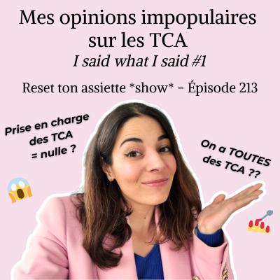 Je te partage aujourd'hui mes opinions impopulaires sur un sujet que j’aborde souvent sur ce podcast : les troubles du comportement alimentaire. Dans cet épisode de ma nouvelle série I said what I said (“j’ai dit ce que j’ai dit”), et dispo filmé sur YouTube 🎥 : https://youtu.be/qdwQ7s32Ovk [https://youtu.be/qdwQ7s32Ovk] je te donne mes avis bruts, nuancés (un peu), radicaux (parfois trop lol) sur les TCA : leur origine, ce qui les entretient, leur prise en charge… Des opinions qui ne font pas toujours l’unanimité 😉 Ce sont des réflexions nourries par mon expérience, mon travail, et tout ce que j’observe depuis des années autour des TCA, de la culture des régimes et de la grossophobie. Je te laisse les découvrir :) Disclaimer : les opinions que je partage ici n’engagent que moi.Ce ne sont ni des recommandations, ni des principes à suivre, ni des vérités absolues. J’explique simplement ce que moi, je pense, en tant que thérapeute et militante. Dis-moi en commentaires quelle unpopular opinion t'a marquée ! 🔗 Ressources & liens : 📚 🎁 Suis mon cours gratuit par email "Libère la mangeuse intuitive en toi" (et kiffe tranquille ta crêpe choco-chantilly)→ https://thelastquiche.fr/manger [https://thelastquiche.fr/manger] 📩 Inscris-toi à ma newsletter féministe “Le Boudoir” (réflexions exclusives, coulisses...) qui sort tous les jeudis et dimanches matins→ https://thelastquiche.fr/newsletter [https://thelastquiche.fr/newsletter] 🎙️ Découvre mon podcast “Reset ton assiette” – disponible sur toutes les plateformes (+ de 200 épisodes)→ https://thelastquiche.fr/podcast-alimentation-intuitive [https://thelastquiche.fr/podcast-alimentation-intuitive] 📸 Suis-moi sur Instagram où je suis super active :→ https://instagram.com/thelastquiche ACCOMPAGNEMENTS 🔥 Rejoins mes accompagnement féministes sur le rapport à l'alimentation et le rapport au corps ! (Alimentation Intuitive, image corporelle...)📱 Appel découverte offert : https://zcal.co/thelastquiche/decouverte [https://zcal.co/thelastquiche/decouverte] 🧃 PROFESSIONNELS & ACCOMPAGNANTS Découvre mon espace de formation, Sans Régimes Ajoutés, dédiés aux professionnels de l'accompagnement, de la santé et du bien-être : https://thelastquiche.fr/sans-regimes-ajoutes [https://thelastquiche.fr/sans-regimes-ajoutes]
