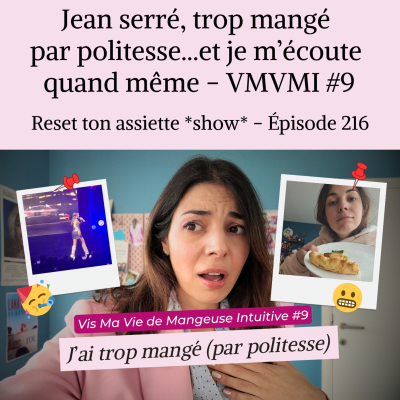 *Pour t'inscrire à ma masterclass offerte "Sortir de l'obsession du poids" du jeudi 2 avril c'est ici : https://thelastquiche.fr/obsession-poids [https://thelastquiche.fr/obsession-poids] * J'ai trop mangé car je suis trop polie (et je m'écoute quand même !) Dans ce nouvel épisode de Vis Ma Vie de Mangeuse Intuitive (🎥 dispo sur YouTube filmé ici : https://youtu.be/H2wau3O4K6Y [https://youtu.be/H2wau3O4K6Y]), je te partage des situations très concrètes de mon quotidien… un quotidien pas parfait mais réaliste de mangeuse intuitive qui s'écoute ;) Parce que non : 👉 être mangeuse intuitive, ce n’est pas manger parfaitement 👉 ce n’est pas toujours savoir exactement quoi faire 👉 et ce n’est clairement pas être déconnectée des autres (coucou la vie sociale 😅) Dans cet épisode, je te montre comment je navigue entre : – manger trop par politesse (et ce que je me dis après) – les buffets, – les sensations de digestion, de lourdeur, de fatigue – le fait de ne pas savoir si j’ai faim… ou pas – l’impact des vêtements sur mon ressenti corporel – des envies spontanées Bref : la vraie vie. ➡️ Comme d’hab, je te montre : comment je décide, comment je m’adapte, comment je me fais confiance… sans règles, sans contrôle, et sans chercher à “bien faire”. Si tu te reconnais dans le fait de : – manger au-delà de ta faim “par politesse” – te sentir perdue dans tes signaux – ne pas savoir t’arrêter – ou avoir l’impression que ton corps est dans les choux, cet épisode va vraiment te parler !💗 Et si tu veux aller plus loin ensemble : Tout ce travail d’écoute de soi, de signaux, de rapport au corps et à la nourriture… je t'aide à le faire en profondeur dans mes accompagnements. Pour que tu redeviennes une véritable mangeuse intuitive ET une femme qui accepte et respecte son corps. 👉 Prends un appel découverte qu'on fasse le point sur ta relation à la nourriture et au corps ici : https://zcal.co/thelastquiche/decouverte [https://zcal.co/thelastquiche/decouverte] (15-20 min, sans engagement) 🔗 Ressources et accompagnements : 📩 Inscris-toi à ma newsletter féministe “Le Boudoir” → https://thelastquiche.fr/newsletter [https://thelastquiche.fr/newsletter] 📚 Cours gratuit “Libère la mangeuse intuitive en toi” → https://thelastquiche.fr/manger [https://thelastquiche.fr/manger] 🎙️ Ecoute mon podcast "Reset ton assiette" et les autres épisodes : → https://thelastquiche.fr/podcast-alimentation-intuitive [https://thelastquiche.fr/podcast-alimentation-intuitive] 🔥 Découvre mes accompagnements pour redevenir mangeuse intuitive, accepter ton corps, gagner confiance en toi... :→ https://thelastquiche.fr/accompagnements [https://thelastquiche.fr/accompagnements] Prends un appel découverte ici pour échanger gratuitement sur ta situation et qu'on voit comment on peut bosser ensemble : → https://zcal.co/thelastquiche/decouverte [https://zcal.co/thelastquiche/decouverte] #alimentationintuitive #TCA #mangeuseintuitive #bodypositive #feminisme #antiregime