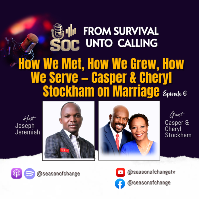 In this powerful and inspiring episode, we sit down with Casper & Cheryl Stockham, renowned marriage and relationship experts, as they share their incredible journey from survival to calling.In this live interview, Casper and Cheryl open up about:How they met and their early marriage journeyThe challenges they faced and how they overcame them togetherHow God transformed their personal experiences into a global callingThe lessons that shaped them into marriage and relationship expertsPractical wisdom for couples navigating love, purpose, and commitmentThis episode is more than a conversation—it’s a testimony of purpose, growth, resilience, and divine alignment in marriage. Whether you are single, married, engaged, or serving in ministry, this discussion will inspire you to see your relationship as part of God’s greater plan.📌 Key Theme: From Survival to Calling🎙️ Guests: Casper & Cheryl Stockham – Marriage & Relationship Experts👉 Don’t forget to LIKE, COMMENT, and SUBSCRIBE to stay connected with life-transforming conversations on purpose, faith, and relationships.🔔 Turn on notifications so you never miss an episode!