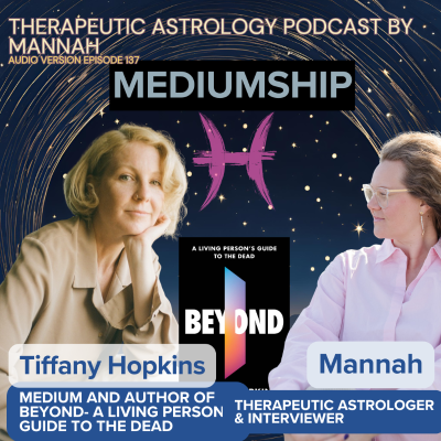 If you are curious about mediumship, I really recommend this interview with medium, teacher and author Tiffany Hopkins. We talk about her book, "Beyond – A Living Person's Guide to the Dead" (2025), which I find to be an easy read, as well as very informative and mind-expanding. I would call Tiffany Hopkins a visionary in this area of mediumship, and I am so glad for this conversation with her. You are very welcome to tap in with us as Tiffany Hopkins shares about: -How she became a medium in a town of mediums -Tiffany worked in tech for 20 years, and it is not too far off from mediumship -Spiritualism, the Second Great Awakening, and Lily Dale -How mediumship and working with AI are similar -The need for discernment -Staying connected to different aspects of your being -The foundation of mediumship and why it changes us -The experience becoming real as it is shared -Creativity and mediumship—where you receive and express -The importance of therapeutic support and being validated -The countercultural component of mediumship -Will mediumship be culturally accepted? -Mediumship as inherently healing and care work -The therapeutic context -Now—what if not all the information is from spirit? Tiffany has a neuroscience background and offers her new two metaphors for what is happening in mediumship -Evidence for Spirit -Improvisation as we listen to both at the same time -Can you bring in information and integrate it? -The spiritual connection is not practical! -LONELINESS—and a potential loneliness renaissance -the social construct of this one romantic partner (I relate this comment then to the Pluto in Scorpio generation) -The Pluto in Scorpio generation is born from 5th of November 1983 to 10th of November 1995 (with retrograde returns during the period so be sure to check out your actual birth day) and we talk about the deep heartbreak that often comes in relationship because we are to grow so much, that we need the pain head first- for healing to occur the trauma need expositon/confrontation/that we dare deal with it. Thank you for being with us- see the video version of this episode: https://youtu.be/-lcloIIbIr4 [https://youtu.be/-lcloIIbIr4] FIND Tiffanys books right here: https://www.amazon.com/Beyond-Living-Persons-Guide-Dead/dp/1454958391 [https://www.amazon.com/Beyond-Living-Persons-Guide-Dead/dp/1454958391] Website: https://tiffanyjhopkins.com/unseen [https://tiffanyjhopkins.com/unseen] Mannah: https://www.therapeuticastrologer.com/ [https://www.therapeuticastrologer.com/]