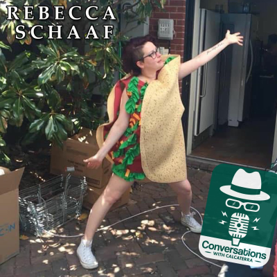 “One of my favorites was the metal trivia night. We had tons of people coming in, all cocky with their cool shirts. They left crying because they didn’t know half the answers.” – Rebecca Schaaf on Conversations with Calcaterra “His mad genius drew me to him. Made me fall in love with him a little bit.” – Rebecca Schaaf about Wil Pelly on Conversations with Calcaterra “Cheap Trick was in town and their crew needed to be fed. We shut down the shack early and ran down to Riverport. They were on the bill with ZZ Top. Ted Kornblum of Magnatone Guitars and Amplifies was there. He said hey Wil does Billy (Gibbons) know you’re here? Wil’s like Billy doesn’t know who I am. Billy walks in and see the Rockstar Dust, lifts his mustache and blops some into his mouth. He turns to Wil and says, Boy, are you responsible for this?!” – Rebecca Schaaf on Conversations with Calcaterra The Rock Star life is more of an attitude. It’s loving what you do and being the best at it. Rebecca Schaaf runs Rockstar Tacos at Gaslight on the Hill in St. Louis with here partner chef and fellow musician Wil Pelly. They’ve fed, broke bread, and partied with many Rock Stars including Alice Cooper and Billy Gibbons of ZZ Top to name a few. Guests at Rockstar Tacos are treated as Rockstars to delicious meals from on of the most creative menus in nation and some leave with valued prizes after trivia while others including the host of this podcast leave nursing their wounded pride after facing the Queen of Trivia’s four challenging rounds. Ken speaks with Rebecca about the culinary delights of Rockstar Taco’s at Gaslight on the Hill, Will Pelly’s genius memes and many topics of pop culture as well as a trivia faceoff. Who won? Listen in and find out. Rockstar Tacos at Gaslight – 4916 Shaw Ave, St. Louis, MO 63110 Twitter – RockstarTaco Instagram - @rebeccaschaaf Visit Ken @ www.kencalcaterra.com and on various social media outlets and please share and comment on this episode. Sign up to our mailing list to receive updates on Ken’s video and photography work and Conversations with Calcaterra Special Thanks to this episode’s sponsors: Rust Bucket Rembrandts – http://rustbucketrembrandts.com Dr. Mark Holland First Capitol Chiropractic and Rehab – St. Charles, MO – 636.946.7777 – http://chrioandrehab.com Chiropractic of Wildwood – Wildwood, MO – 636.458.7575 – http://chiropractorwildwood.com Accident & Pain Relief of St. Louis – Downtown – 314.588.9100 – http://mystlouischiropractor.com Chiropractic of North County – 314.847.8888 – http://mystlouischiropractor.com Alton Chiropractic – Alton, IL – 618.465.2222 – http://altonchiropractic.com