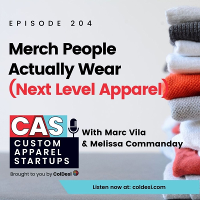 EPISODE 204 - MERCH PEOPLE ACTUALLY WEAR ( NEXT LEVEL APPAREL) What’s the difference between a shirt people wear to brunch and one they use to wash their car? That’s exactly what Marc Vila from ColDesi tackles in this episode of the CAS Podcast, joined by Melissa Commanday from Next Level Apparel. It’s a deep, no-fluff dive into why the quality of your blank apparel can make or break your brand, your print quality, and your customer retention. This episode is for you if: * You’re tired of selling shirts that don’t get worn * You’ve ever had a customer disappear without complaining — and don’t know why * You want to charge more for your work but can’t justify it with cheap blanks * You’ve invested in great printing equipment and still wonder why your output looks average Here’s what you’ll take away: 👕 Why “freebie-quality” blanks ruin premium designs: No matter how good your artwork or printer is, cheap shirts kill the final product. Marc breaks down how using low-end blanks leads to poor wash performance, bad drape, and print issues — all of which your customer blames on you. 💰 Cost-per-wear logic that boosts your margins: Melissa explains why premium shirts — even if they cost more up front — lead to repeat wears, brand visibility, and more referrals. That $1 difference per shirt? It’s likely your most profitable upgrade. 📉 The silent killer of small business growth: Not all unhappy customers complain. Many just never order again. Learn how to gather meaningful feedback and turn “meh” into loyalty. 🎯 Real talk on rebranding and customer perception: Want your brand to be taken seriously? Then the tearaway tags, soft fabric, and retail-level fit of your blanks matter. Whether it’s your own brand or a client’s, people judge the final piece — not the price sheet. 👚How better blanks = easier selling: If your customers wear the shirts proudly, they become walking billboards. Marc shares how a personal trainer literally gained new clients just by wearing a well-fitted branded tee. If you’re a print shop, designer, or brand selling merch — and you’ve been choosing your blanks based on what’s cheapest on the distributor site that day — this episode will challenge that thinking hard. Because shirts are more than just products. They're emotional. They're identity. They're walking reviews. Listen now if you're ready to stop selling forgettable merch — and start delivering apparel people actually love.