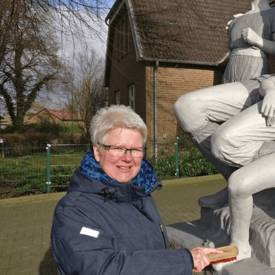 Auch in Corona-Zeiten unterwegs: Maren Rehmke ist das "mobile Kulturbüro" von Osterstedt. Ob Veranstaltungen organisieren oder Skulpturen putzen - sie macht sie alles.