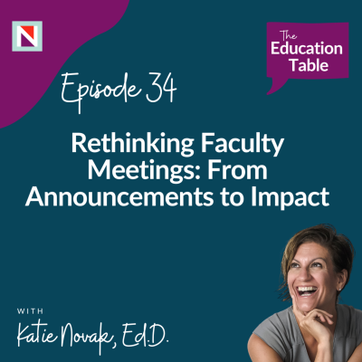In this episode of The Education Table, Dr. Katie Novak focuses on how faculty meeting time is often used for logistics, announcements, and information that could be shared asynchronously, rather than for the kind of collaborative learning that supports instructional improvement. The episode invites leaders to reconsider how this limited and valuable time is structured. Dr. Novak explains how faculty meetings can be intentionally designed to support adult learning by clarifying instructional goals, engaging educators in shared problem-solving, and creating space for reflection and alignment. Drawing on principles of Universal Design for Learning, she highlights how the same design choices that support student learning such as clear purpose, meaningful engagement, and intentional use of time, also apply to adults. Rather than adding more to educators’ plates, this episode emphasizes making better use of time leaders already have. When faculty meetings are aligned to instructional priorities and designed with intention, they can become a powerful lever for coherence, trust, and improved practice. View episode transcript [https://www.novakeducation.com/hubfs/Podcast%20-%20The%20Education%20Table/Podcast_Episode_34_Transcript.pdf] View corresponding blog [https://www.novakeducation.com/blog/educators-guide-to-better-more-productive-meetings]