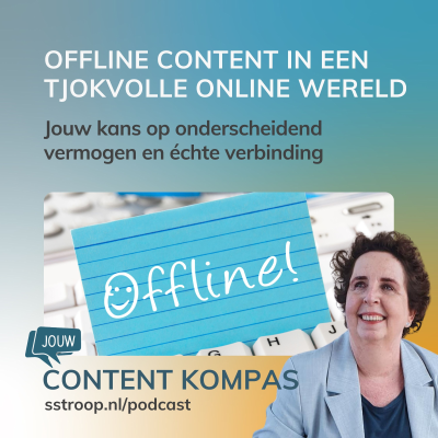 Offline content is terug van weggeweest en voorzichtig bezig met een opmars. Events worden druk bezocht, mensen willen tastbare zaken zoals vinyl, en 'echte' foto's in plaats van AI-nep, kijk maar naar BeReal. En wat denk je van Netflix dat nu met offline locaties en ervaringen experimenteert in hun Netflix Houses? Met offline content heb je een antwoord op online concurrentie waar het steeds lastiger wordt om indruk te maken. En het biedt je een kans op onderscheidend vermogen. Zeker als je merkt dat concurrerende aanbieders het niet of weinig inzetten, je doelgroep het waardeert en als offline content je kan helpen om bepaalde doelen te realiseren. In deze podcast gaat contentstrateeg Linda Krijns verder in op de redenen voor de inzet van offline content. En natuurlijk geeft ze een aantal ideeën ter inspiratie. IDEEËN VOOR OFFLINE CONTENT Per situatie en per contentstrategie kun je aan verschillende vormen van offline content denken: 1. Kleine boekjes of fysieke weggevers: weggeefboekjes, handige kaartjes of mini-magazines zijn opvallend en kunnen je boodschap goed overbrengen. 2. Persoonlijke post: een handgeschreven kaart of fysieke nieuwsbrief met speciale inhoud valt écht op in de brievenbus. 3. Magazines: papieren magazines lenen zich voor bladeren en voor inspiratie naast kennis en informatie. 4. Boek of boeken: dat hoeven geen hele dikke managementboeken te zijn, het kan ook een klein, handzaam boek(je) zijn over één specifiek deelonderwerp. Iets dat misschien wel uitgroeit tot een serie van dit soort boekjes. 5. Evenementen: organiseer bijeenkomsten waar jouw doelgroep elkaar en jouw kennis ‘in het echt’ kan ontmoeten. Dit artikel bevat meer offline content ideeën. [https://sstroop.nl/offline-contentmarketing/] TRAINING CONTENTSTRATEGIE & ADVIES OP MAAT De Content Strategiedag [https://sstroop.nl/contentstrategie-de-juiste-content/]: samen je strategie en plan formuleren nadat Linda Krijns alle benodigde analyses voor je gemaakt heeft. Inspirerend en supereffectief. Incompany training contentstrategie [https://sstroop.nl/training-contentstrategie/]: als je samen met je team een contentstrategie wilt maken met alle relevante inbreng en extra draagvlak. Ook voor recruitment of interne communicatie. Content Connect [https://sstroop.nl/content-connect/]: sparren met Linda Krijns, ondersteuning bij je contentstrategie plus handige templates, tools en micro-learnings.