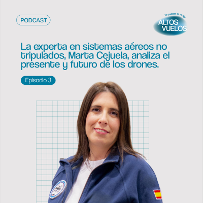 Ya disponible el tercer episodio de la tercera temporada de Altos Vuelos, el podcast de Ellas Vuelan Alto. En esta ocasión hablamos con Marta Cejuela, experta en sistemas aéreos no tripulados sobre el presente y futuro de los drones y su impacto en ámbitos como la gestión de emergencias, la logística, la agricultura y la formación de talento en el sector aeroespacial. Una conversación clave para entender cómo estas tecnologías ya están transformando nuestra sociedad.