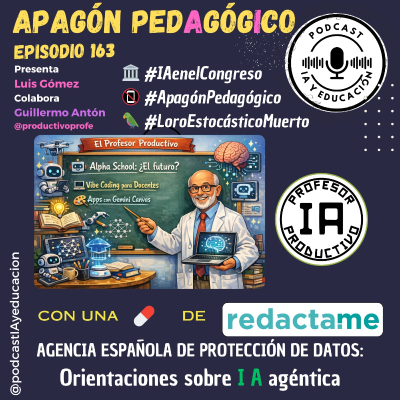 Hoy hablamos de que el término "inteligencia artificial" cumple 70 años y seguimos sin ponernos de acuerdo en para qué sirve ni quién manda en ella. En este episodio analizamos cómo los diputados del Congreso usan la IA para escribir sus discursos, por qué el "loro estocástico" ya es historia, qué nos dice la filosofía ética sobre esta tecnología, qué le preocupa más a un experto en IA que las propias empresas tecnológicas, y por qué prohibir las pantallas en el aula mientras se exige competencia digital es una contradicción que tiene nombre: apagón pedagógico. Guillermo Antón el Profesor Productivo va a contarnos qué es Alpha School, nos explica en qué consiste el Vibe Coding para Docentes y nos enseñará a crear Aplicaciones educativas con Gemini Canvas; Jesús Rivas de redacta.me nos traerá otra sabia píldora de sabiduría educativa y cerraremos con los acertijos peliculeros. ENLACES Episodio 163. 10 abril LINKTREE DEL PODCAST https://linktr.ee/podcastiayeducacion NOTICIAS Anthropic. (2026). Claude [Modelo de lenguaje de gran escala]. Anthropic. https://claude.ai Cortina, A. (2026, 11 de marzo). Inteligencia artificial, ¿para qué? El País. https://elpais.com/opinion/2026-03-11/inteligencia-artificial-para-que.html Mars, A. (2026, 22 de marzo). Ahora, ponmelo con tono agresivo: así han empezado a utilizar la IA los diputados del Congreso. El País. https://elpais.com/espana/2026-03-22/ahora-ponmelo-con-tono-agresivo-asi-han-empezando-a-utilizar-la-ia-los-diputados-del-congreso.html Ortiz, A. (2026, 12 de marzo). El loro estocástico ha muerto. Error500. https://www.error500.net/p/el-loro-estocastico-ha-muerto Pérez, E. (s. f.). Os comparto el artículo de un amigo: apagón pedagógico. LinkedIn. https://www.linkedin.com/pulse/os-comparto-el-artículo-de-un-amigo-apagón-pedagógico-eduardo-pérez-6nlge/ Salgado, D. (2026, marzo). Senén Barro, catedrático de Inteligencia Artificial: "Me preocupa más cómo gobierna Trump que OpenAI". elDiario.es. https://www.eldiario.es/galicia/senen-barro-catedratico-inteligencia-artificial-preocupa-gobierna-trump-openai_1_13064152.html PROFESOR PRODUCTIVO https://profesorproductivo.com/blog/actividades-educativas-interactivas-con-gemini-canvas/ https://exitoeducativo.net/alpha-schools-llegan-los-colegios-donde-la-ia-sustituye-a-los-profesores/ JESÚS RIVAS. REDACTA.ME. https://www.aepd.es/prensa-y-comunicacion/notas-de-prensa/la-agencia-publica-unas-orientaciones-sobre-inteligencia