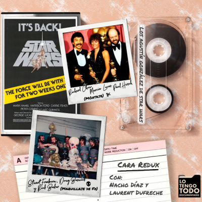 No, no te has equivocado: somos Lo Tengo Todo Documentado, el podcast que ha acabado ya con Amar es para siempre, Cuéntame y tenemos funestos planes para el Zarapito. Esas dos series que han abarcado décadas han sucumbido al paso del tiempo, pero aquí estamos nosotros aguantando el tirón, cogiendo el dobladillo a las unidades temporales, incumpliendo promesas y volviendo al ruedo cuando todo el mundo ya se pensaba que habían acabado como nosotros. Un poco como Fantomas en las películas de Louise de Funès y un mucho como cualquier político condenado por un mínimo caso de corrupción y robo de millones de euros que vuelve a tener un cargo público por arte de birlibirloque. Lo bueno es que nuestros fans (capitaneados por las respectivas progenitoras de Juan Salom de España y un servidor) ya nos conocen más que un nublado y hace unas semanas ya lo veían todo perdido. Verbigracia: «considerando la improbabilidad de que se edite la cara D en 2023…». Sivispacem, un saludo y gracias por conocernos mejor que nosotros mismos. Y dicho lo cual, ante ti tienes la última parte de estos especiales sobre «La Guerra de las Galaxias: Episodio IV, una nueva esperanza» que hemos denominado «Los Agustín González de Star Wars» y con los que hemos querido homenajear a dos de nuestros barbudos favoritos del cine: rimando con nuestro George porque terminamos en un episodio -el cuarto- con el que empezó todo para él y apostando por la gratísima idea de Francis Ford e irnos a grabar este podcast a las Islas Filipinas mientras remontamos un río en una barcaza y hacemos surf ne medio de humo anaranjado. Seguimos pensando que era una buena manera de sacar el proyecto adelante y asegurar un ambiente sano, sin problemas y sin peligro de infarto para ninguno de los participantes. Lo raro es que cuando hemos comentado este plan sin fisuras a familiares, amigos o, incluso su Santidad, todo el mundo se ha echado las manos a la cabeza. Por lo que sea. Como decimos, no cejamos en nuestro empeño de contar cómo se llevó a cabo «La Guerra de las Galaxias: Episodio IV, una nueva esperanza» y, esta vez, nos centramos en maquillaje y montaje; por lo que vamos a hablar mucho sobre el venerable Stuart Freeborn, pero también sobre dos cualquiera en este mundo del látex, las pelucas y los hocicos de pitiminí: Rick Baker y Rob Bottin. Un «casi nada al aparato» de manual que da sentido a todas esas adorables personas que siguen pasando lista y discutiendo naderías sobre los parroquianos de la cantina (¡Ah, ese fandom bueno!). Y, siguiendo una evolución lógica que nos sorprende incluso a nosotros mismos, terminaremos como lo hacen las pelis: contando la historia de los tres improvisados compañeros de piso de Goerge Lucas: Richard Chow, Paul Hirsch y Marcia Lucas, que acamparon cada uno en una de las plantas de la casa de George armados con kilómetros de bobinas en varios formatos, unas tijeras de esas de las que no pinchan y un rollo de celo en el dedo índice a modo. de rosquilla No tengáis ninguna duda: sin este trío la película hubiera sido otra cosa bien distinta y, por seguro, bastante más aburrida. Como decimos, con ese podcast terminamos de glosar las andanzas de estos profesionales del cine cuyas carreras y premios hablan por sí solos, pero que permanecen en el anonimato. Para ello (además seguir homenajeando a nuestro secundario del cine español favorito) hemos contado con la colaboración desinteresada (o pagada en palmeras de chocolate, moneda de cambio de cualquier transacción buena que se precie) de Nacho Díaz, que atesora premios, nominaciones y películas a tutiplén y con Laurent Dufreche, que además de sufrir estoicamente los rigores del transporte de media distancia y coleccionar nominaciones a los Goya, ha tenido a bien hasta a preguntar a un exdirector de Panavision Europa para que nos explicara cierto lío de formatos en el negativo. Sí, cómo nos vamos a querer a nuestros colaboradores si están peor de lo suyo que nosotros de lo nuestro. Más o menos. Todo ello acompañados de 51 canciones editadas en 1977 (el año de estreno de esta película); 40 calvas de látex; la charanga de la tía Cotufa; montadores nihilistas y tantas cortinillas de estrella como hemos sido capaces de imaginar y, como Han con la riquezas, somos capaces de imaginar muchas. Con todos ustedes, Lo Tengo Todo Documentado, el único podcast que descubre el verdadero uso de las pinzas de la ropa en el mundo del cine. (Nota: si escuchas esto en Spotify a través del móvil puedes ir directamente a cada sección pulsando el rango temporal entre paréntesis). P.D.: este podcast lee el futuro. 🎼 Lista de canciones: https://open.spotify.com/playlist/7n6oQoFyoYro7CaoWZcDGw?si=da477ce41c534b1b ▶️ Cara Redux Índice: 🗣️ Intro (02:25). ✅ Las pinzas de la ropa como elemento insustituible en todo maquillaje que se precie. (06:08). 🎙️ Nacho Díaz, el hombre que ha cortado todos los cuellos del cine español (con látex). (57:05). ✅ El 13 Rue del Percebe del montaje. (02:04:58). 🎙️ Laurent Dufreche en: la culpa es siempre del montaje. (03:29:14). 🗣️ Despedida y MUY hander (04:33:46).