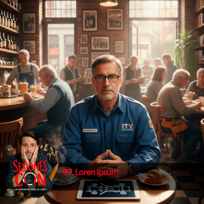 SESIONES CON. Un podcast de radio sin radio Episodio 1x99 Loren Ipsum Me he citado con un agente técnico de inspecciones en una cafetería para llevar a cabo la revisión rutinaria de los 99 episodios en el podcast. Si la paso, el próximo será el número cien. www.sergimo.com