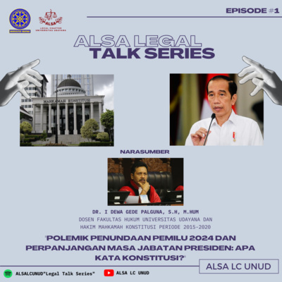 Episode perdana Season 2 podcast ALSA Legal Talk Series pada kesempatan kali ini hadir membahas mengenai bagaimana ketetapan Konstitusi Negara Republik Indonesia terhadap isu yang sedang hangat di kalangan masyarakat yakni polemik penundaan pemilu 2024 dan perpanjangan masa jabatan Presiden. Nadine selaku moderator berdiskusi bersama Dr. I Dewa Gede Palguna, S.H, M.Hum yang akan memberikan pandangannya selaku Dosen Fakultas Hukum Universitas Udayana dan juga Hakim Mahkamah Konstitusi RI periode 2015-2020. Sebenarnya apakah bisa pemilu ditunda dan apakah bisa pula masa jabatan Presiden diperpanjang? Mari kita simak podcast kali ini untuk mengetahui jawabannya! Together as One: One Team, One Dream, One Family ALSA, Always be One!