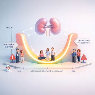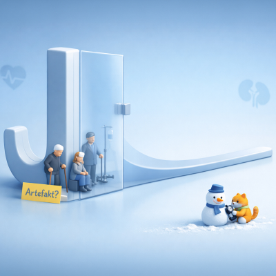 Neue Daten aus der SCREAM-Nieren-Population Hej aus den Glomeruli! Wie versprochen geht’s uns heute an die Nieren. Das wird auch nicht sooo lang, ebenfalls versprochen. Wir nennen es jedenfalls Short-Take. Herausgepickt haben wir eine Studie, die nicht nur nephrologisch, sondern fast schon politisch daherkommt: Sie zeigt (oh, Wunder), dass es sich an allen Rändern gefährlich und in der Mitte mithin am besten lebt. Wieder eine schöne U-Kurve. Klinisch interessant: Selbst eine normale (geschätzte) glomeruläre Filtrationsrate geht mit höheren Risiken einher, sofern sie unterhalb des 25. Alters-/Geschlechts-Perzentils liegt. Die Beobachtungsstudie (Cave!) liefert somit interessante Hinweise, wie eine Risikostratifizierung für die Niere nach Alter und Geschlecht theoretisch etwas feiner möglich wäre. (Aufgezeichnet haben wir am 23. Januar 2026.) > Plus für alle, die Zusammenfassung unseres Gesprächs und natürlich die Literatur: https://www.evidenzupdate.de/p/schoner-leben-in-der-mitte-auch-bei-egfr [https://www.evidenzupdate.de/p/schoner-leben-in-der-mitte-auch-bei-egfr] > > > Das Plus für alle Unterstützer zu dieser Episode: https://www.evidenzupdate.de/p/schoner-leben-in-der-mitte-auch-bei-transkript [https://www.evidenzupdate.de/p/schoner-leben-in-der-mitte-auch-bei-transkript] > > > Schreibt uns: podcast@evidenzupdate.de [podcast@evidenzupdate.de] Und für alle Sprungbegabten hier die Kapitelmarken: * 00:00:00 Intro * 00:00:58 Der Schneemannbaupodcast des Gesundheitswesens * 00:01:32 Auf die Länge kommt es doch an * 00:03:24 Die heutige Arbeit * 00:04:09 Die Methode * 00:04:55 eGFR-Formeln * 00:07:19 Die Population * 00:09:31 Eine Stärke * 00:10:19 Ergebnisse * 00:13:13 Eine Interpretation * 00:15:45 Ein neues Prognosetool? * 00:17:45 Limitationen * 00:20:40 Kommt die Prä-CKD? * 00:25:25 Fazit Cliffhanger gefällig? Wir bleiben ein wenig in der Niere. Vi hörs, hej då!