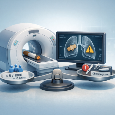 Von Evidenz, Überdiagnosen und echter Prävention Salut! Diese Episode widmen wir allen, die schon zu viele Glimmstängel verputzt haben, die die Verbrennungsprodukte passiv erduldet haben und jenen, die andere von Zigarette et al. losbringen wollen. Denn heute sprechen wir über die Lungenkrebs-Früherkennung für Raucherinnen und Raucher [https://www.g-ba.de/themen/methodenbewertung/erwachsene/krebsfrueherkennung/lungenkrebs-screening/], die im April starten soll. Mit am Start ist wieder Jean-François Chenot aus Greifswald. Um eine Take-home-Message vorwegzunehmen: Die Früherkennung mittels Low‑Dose‑CT (LDCT) halten wir für eine ambivalente Maßnahme mit moderatem Nutzen und relevanten Schäden. Das Screening ist kein Ersatz für Rauchstopp, sondern eine hochregulierte „Reparaturmaßnahme“ für eine kleine, klar definierte Hochrisikogruppe. Das erwartet uns Nennt es gerne „Lernziele“. Nach der Episode wollen wir jedenfalls verstehen: 1. die Struktur des neuen Programms zur Lungenkrebs‑Früherkennung in Deutschland (Zielgruppe, Ablauf, Qualifikationsanforderungen), 2. den Nutzen und die wichtigsten Schäden und die Einordnung beider, 3. die Rolle von Vortestwahrscheinlichkeit, verschiedener Risikoscores und des Case-Findings für die Indikationsstellung, 4. zentrale ökonomische und ethische Fragen, 5. typische Fehlanreize (falsche Sicherheit) und die Möglichkeiten, Gespräche über die Früherkennung mit Rauchstopp-Beratung zu verknüpfen. > Plus für alle hier: die Zusammenfassung unseres Gesprächs, der besprochenen Leitlinien-Empfehlungen und natürlich die Literatur: https://www.evidenzupdate.de/p/lungenkrebs-fruherkennung-was-bringt [https://www.evidenzupdate.de/p/lungenkrebs-fruherkennung-was-bringt] > Das Plus für alle Unterstützer zu dieser Episode: https://www.evidenzupdate.de/p/lungenkrebs-fruherkennung-transkript [https://www.evidenzupdate.de/p/lungenkrebs-fruherkennung-transkript] > > > Schreibt uns: podcast@evidenzupdate.de [podcast@evidenzupdate.de] Für alle, die springen mögen, hier wieder die Kapitelmarken: * 00:00:00 Intro * 00:03:45 Sucht-Survey * 00:06:14 Interessenkonflikte * 00:06:47 Verordnung und Richtlinie * 00:11:32 Die Evidenz * 00:18:23 NNS und NNH * 00:22:20 Kosten und Wirtschaftlichkeit * 00:25:23 HANSE-Studie * 00:27:33 Case Finding * 00:31:34 Gerechtigkeit * 00:36:17 Echte Prävention und ein Paradox * 00:40:46 Fazit(s)