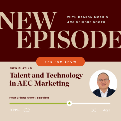 AEC marketing and business development are changing fast. In this episode, Deirdre Booth talks with Scott Butcher of Stambaugh Ness about what is reshaping the work today and what leaders need next. They cover the talent crunch, the "missing middle," and why environmental scanning belongs in every plan. They discuss practical uses of AI, how early adopters are already productizing tools, and what happens when firms delay. Scott makes the case for true marketing leadership at the table, not just a new title, and offers a six month playbook that focuses on three use cases for AI, stronger BD and marketing alignment, and a habit of testing and learning. The conversation closes with clear risks of waiting, including loss of relevance and recruiting challenges, and a reminder that agility wins when conditions shift.