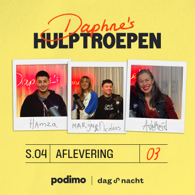 Moet je eerlijk zijn over het moederschap? Wat doe je als je tafelgenoot gromt tijdens het eten? Mag je je uitspreken over het uitgavenpatroon van een vriendin? Is het erg als je je live locatie niet wil delen met je partner? En hoe reageer je op ongrappige AI-memes? Heb jij een dilemma waar je hulp bij kunt gebruiken? Mail dan naar hulptroepen@podimo.com of stuur een DM op Instagram: @daphneshulptroepen. Check de Community Feed op Podimo om mee te praten over de dilemma's. Sponsor: Maak met je VvE een duurzaam thuis. Ontdek hoe verduurzamen binnen een VvE werkt op verbeterjehuis.nl/vve Je batterij gaat net zo lang door als jij met de batterijgarantie van Vodafone. Is de batterijcapaciteit minder dan 80% binnen 3 jaar? Dan wordt de batterij helemaal gratis vervangen! Kijk op vodafone.nl/batterijgarantie voor de voorwaarden. Wil je adverteren in deze podcast? Dat kan! Mail naar adverteren@dagennacht.nl