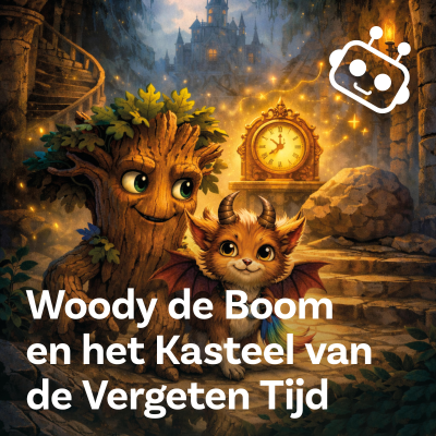 Wat gebeurt er als een nieuwsgierige boom in een schilderij valt? In deze avontuurlijke aflevering belandt Woody, een vrolijke eik, plotseling in een mysterieus kasteel vol raadsels, magische trappen en… een pratende draak met regenboogstaart! Samen met Fluffy moet Woody geheimen ontrafelen om het Kasteel van de Vergeten Tijd te bevrijden. Luister je mee naar dit verhaal? Wil je meer weten of heb je ook een leuk idee voor een verhaal? Ga dan naar Robotverteller.nl [https://robotverteller.nl]