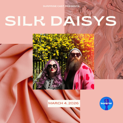 Hi James and Karla, Thank you for joining me at the Surprise Cast table. I loved discussing the self-titled album, creative process, personal stories, and collaborating with Mark Gardener of Ride. It was cool learning about how you two met in such a serendipitous way. The minute you mentioned musical influences from post-punk, shoegaze, and dreampop, I felt right at ease in going deeper into the conversation. Continue down the trajectory of being "weird" and thinking "outside the box". It's something I can relate to quite a bit. Your music brings sweetness and light to our troubled world. Follow Silk Daisys: https://silkdaisys.bandcamp.com/album/silk-daisys [https://silkdaisys.bandcamp.com/album/silk-daisys] Follow Mark Gardener: https://www.ox4sound.co.uk/theteam [https://www.ox4sound.co.uk/theteam] Follow Surprise Cast: Amazon, Apple, iHeart, Podbean, Spotify, or YouTube