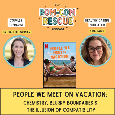 Any takeaways from this episode? [https://www.buzzsprout.com/twilio/text_messages/2300876/open_sms] College friends. Annual vacations. Questionable boundaries. And the illusion that everything works better when life is on pause. This week on RomCom Rescue, Kira Sabin and Dr. Isabelle Morley break down Netflix’s People We Meet on Vacation, starring Emily Bader and Tom Blyth — a friends-to-lovers story that should work… but maybe doesn’t. We talk about: * Why “vacation chemistry” is not the same as real-life compatibility * The outdated question of “Can men and women be friends?” * Emotional intimacy, blurry boundaries, and what actually creates problems in relationships * Why attraction alone doesn’t mean you should build a life together * And the big miss that kept this romance from fully landing Fair warning: we liked parts of it… and still had a lot to say. 💡 Key Love Lessons We Break Down 1. Vacation You ≠ Real-Life You Being relaxed, playful, and day-drinking in Tuscany is not the same as navigating: 2. “Can Men and Women Be Friends?” Is the Wrong Question Avoidance, lack of clarity, and unspoken dynamics are. 3. Attraction Is Human — What You Do With It Matters 4. Chemistry vs. Compatibility * Chemistry asks: Do I feel pulled toward you? * Compatibility asks: Can our lives actually work together? 5. Emotional Closeness Needs Clarity 🎧 Coming Next Week - Our Bridgerton Event! ✨ Bridgerton Pre-Game Episode What we love. What we don’t. What we’re hoping to see. Costumes included. Obviously. Come talk with us about your favorite rom-coms on instagram [https://www.instagram.com/romcomrescue], tiktok [https://www.tiktok.com/@romcomrescue], & youtube [https://www.youtube.com/channel/UCzeJfFKkhok2z-TVi5dbJoA] and Bluesky! [https://bsky.app/profile/romcomrescuepod.bsky.social] Get show notes, transcripts, and more information on at Rom-ComRescue.com [https://romcomrescue.com/]