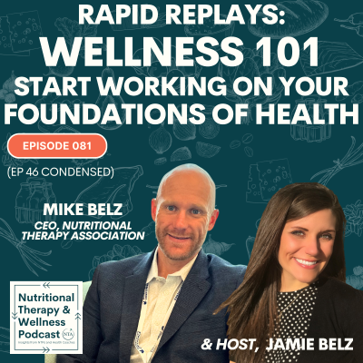 This episode marks the conclusion of our recent Rapid Replay Series of condensed episodes, carefully curated as a launchpad for anyone wanting to level up in wellness. In this replay episode of The Nutritional Therapy and Wellness Podcast (originally Episode 46), host Jamie Belz, FNTP, MHC, and CEO of the Nutritional Therapy Association, Mike Belz, break down the Foundations of Wellness into common-sense action steps for anyone looking to level up. If you've been nodding along with the wellness movement but still aren't sure how to take your first real step - or you want to double-check what you're doing to ensure you're not missing anything - this episode is your warm welcome in. People everywhere are waking up to a simple truth: real health doesn't come from pills, shakes, or short-term programs. Most of us have tried them - spent the money, followed the plans - only to end up frustrated or right back where we started. The missing piece? A strong foundation. And the good news is, it's not complicated - just a few practical, common-sense shifts can spark real, lasting change. This episode is packed with real talk, science-backed wisdom, and practical tips to help you pick your own adventure in a doable way. No more "all or nothing" attempts. Start over for the last time with one or a few of the easy but effective action steps you can incorporate today. If you're ready to stop feeling overwhelmed and finally start your wellness journey, this episode breaks it down into six simple, sustainable categories - what we call the Foundations of Wellness. You'll learn how to: * Eat a nutrient-dense diet rooted in real, whole foods (not calorie math), following Weston A. Price principles and honoring your bio-individual needs. * Optimize digestion, the root of all health, by chewing thoroughly, practicing mindful eating, and supporting stomach acid and enzyme function. * Balance blood sugar with small, daily habits like walking after meals and pairing carbs with protein and fat. * Improve sleep through calming evening routines, avoiding stimulants before bed, and aligning with your circadian rhythm. * Reduce stress with tools like the 4-7-8 breath, gratitude practices, and brain dumping. * Incorporate movement you actually enjoy - walking, dancing, or strength training—while supporting lymph flow, bone density, and energy. Podcast Episodes Mentioned (Besides the Rapid Replay Episodes): Episode 28 [https://podcasts.apple.com/us/podcast/the-nutritional-therapy-and-wellness-podcast/id1733339864?i=1000678868802] – Blood Sugar 101 Episode 29 [https://spotifycreators-web.app.link/e/az3PFOEoHZb] - Quick Tips for Blood Sugar Regulation Episode 62 [https://spotifycreators-web.app.link/e/Z9m1vNEoHZb] - Quick Tips From Your Blood Sugar Bestie Episode 74 - [https://spotifycreators-web.app.link/e/576VagepHZb]Dehydration Nation Find a Nutritional Therapy Practitioner (NTP): NTA Practitioner Directory [https://practitionerdirectory.nutritionaltherapy.com/entity/grid?EntityTypeId=e6b1de3a-72c3-4b0a-97a4-6919bacbad5d&ListingId=ba949308-2f17-44f0-8d13-d0e4a8f4ca0a&SmartSearchId=2707aa25-ba65-4c53-b02b-2b6ab9431c5c] Work with a practitioner directly through the NTA. Book a consultation: NTA HEALTH [https://www.nutritionaltherapy.com/nta-health] Jamie's Rapid Replay Series BONUS Episodes (These are the episodes people tell us they skipped because they "didn't want to hear it."): Mystery Episode One [https://spotifycreators-web.app.link/e/Jnty2C0oHZb] Mystery Episode Two [https://spotifycreators-web.app.link/e/4Jo1AwYoHZb] Mystery Episode Three [https://spotifycreators-web.app.link/e/AX769zUoHZb] Mystery Episode Four [https://spotifycreators-web.app.link/e/uvVPYc9oHZb] Please hit SUBSCRIBE, leave a 5-Star Review, and connect with us on Spotify comments!