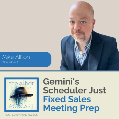 Your sales team spends 70% of their time on admin work - not selling. Do the math: if your top AE makes $120K and only spends 30% of their time on revenue activities, you're paying $84,000 for data entry and CRM updates. That's the Admin Drag tax killing your pipeline velocity in 2026. But here's the real problem: you bought AI six months ago (Gemini, ChatGPT, Einstein), rolled it out with a 45-minute webinar, and… crickets. Adoption is at 14%. Your VP is asking what you're paying for. This isn't a technology problem. It's a leadership problem. You installed software when you needed to redesign the workflow. In this episode, Mike Allton (Director of Partner-Led Growth at Agorapulse) deconstructs the 95% AI pilot failure rate and shows you exactly what Revenue Architecture looks like in practice. You'll discover: • The real cost of manual meeting prep (90 minutes vs. 8 minutes with Gemini's Scheduler) • How to build a "Digital Crew" that automates research, briefing docs, and objection prep • Why Gemini's 2 million token context window changes everything for sales intelligence • The 3-day audit that reveals where your team is hemorrhaging time • How to move from "Human-in-the-Loop" to "Human-on-the-Loop" automation Stop installing tools your team won't use. Start architecting workflows that reclaim 25-30 hours per rep, per week. Resources: TheAIHat.com/speaking [https://TheAIHat.com/speaking] CHAPTERS 00:00:00 - Introduction: The $600K Call She's Unprepared For 00:02:20 - The $84,000 Admin Drag Tax (Do the Math) 00:03:41 - Why 95% of AI Pilots Fail (It's Not the Technology) 00:04:05 - The Da Vinci Workshop: Building a Digital Crew 00:05:17 - Pilot Purgatory: The 6-Month Failure Timeline 00:07:06 - The Old Way: 90 Minutes of Manual Meeting Prep 00:08:48 - The Digital Crew Way: Gemini Scheduler in Action 00:11:48 - Why Gemini Is Structurally Different 00:12:16 - Native Workspace Integration (Friction Removal) 00:12:36 - The 2 Million Token Context Window 00:13:20 - Multimodal Native (Not Franken-Botted) 00:14:23 - Grounding with Google Search (The Accuracy Engine) 00:14:43 - The Scheduler: The Agentic Unlock 00:15:36 - Your Homework: The 3-Day Time Tracking Audit 00:17:01 - How to Architect Your Digital Crew (Workshop Info) 00:17:45 - Closing: Stop Installing Software, Start Architecting Systems Show Notes & Transcript: https://theaihat.com/geminis-scheduler-just-fixed-sales-meeting-prep-and-killed-the-90-minute-research-grind/ [https://theaihat.com/geminis-scheduler-just-fixed-sales-meeting-prep-and-killed-the-90-minute-research-grind/] Learn more about your ad choices. Visit megaphone.fm/adchoices [https://megaphone.fm/adchoices]