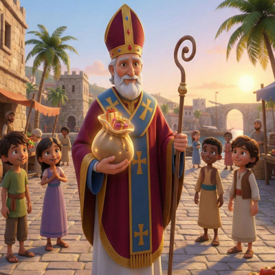 Den hellige Nikolas – en historie om godhet, gaver og kristen nestekjærlighet | Maram I denne adventsepisoden av Historier fra Maram får Rita, Sunniva og lille Teresa høre om den hellige Nikolas – biskopen som ble kjent for sin gavmildhet, sitt mot og sin urokkelige tro. Fortellingen tar oss fra den bibelske kystbyen Patara til Myra, der Nikolas ble valgt til biskop og viet livet sitt til å hjelpe de fattige og beskytte de svake. Barn blir kjent med de klassiske helgenhistoriene: gullet som reddet tre unge jenter, sjømennene som ble reddet fra stormen, og tradisjonen som gjorde 6. desember til en dag preget av små gaver og stor glede. Alt formidlet i adventslys og stillhet på øya Maram, der jentene lytter til historien mens vinden uler rundt huset. Episoden minner om hvorfor den hellige Nikolas fortsatt feires: Han lærer oss å være barmhjertige, dele med andre og leve med et åpent hjerte i møte med dem som trenger oss. Historier fra Maram er produsert med støtte fra Bonifatiuswerk